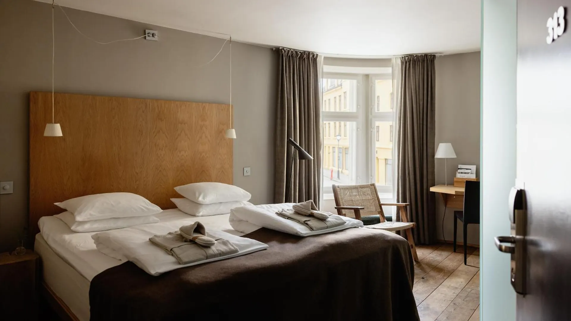 The accommodation is just around the corner from Apotekertorget bus station.